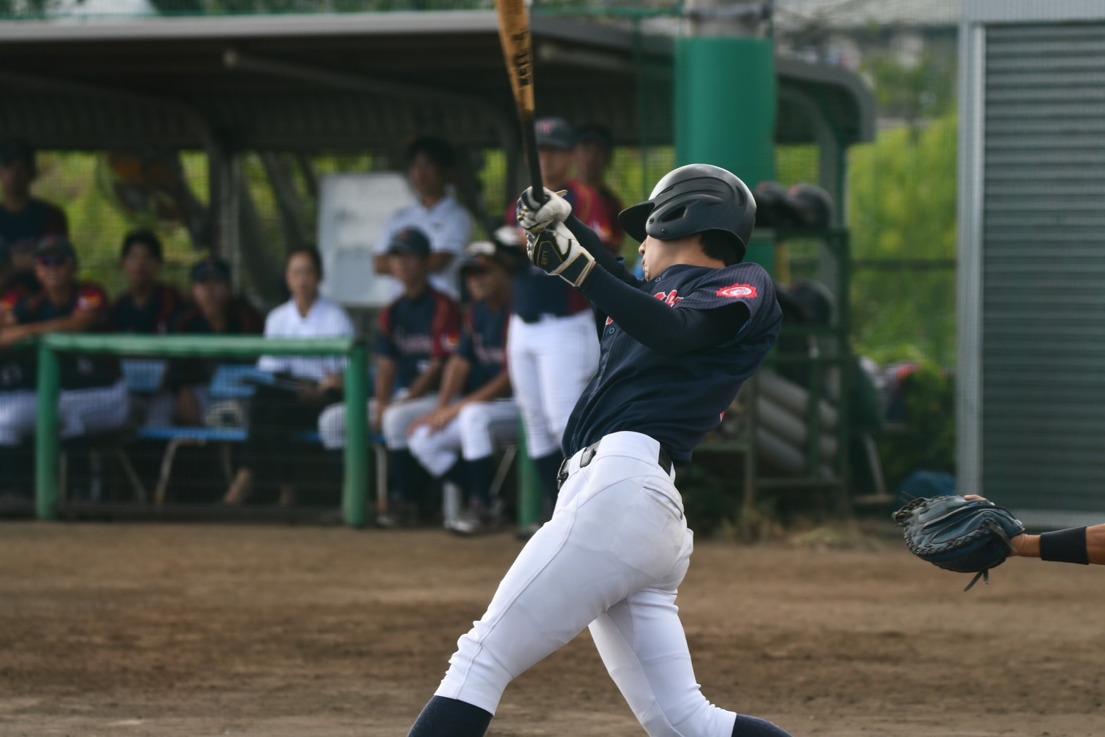 2回表、市川(3年/京都産業大学附属)が中前安打を放ち出塁すると、盗塁を決めチャンスを作ります。続く鈴木[泰](3年/船橋東)が放った打球は相手のミスを誘い、市川が生還。さらに、熱い漢中村(4年/長野)が適時打を放ち、この回2点を追加します。