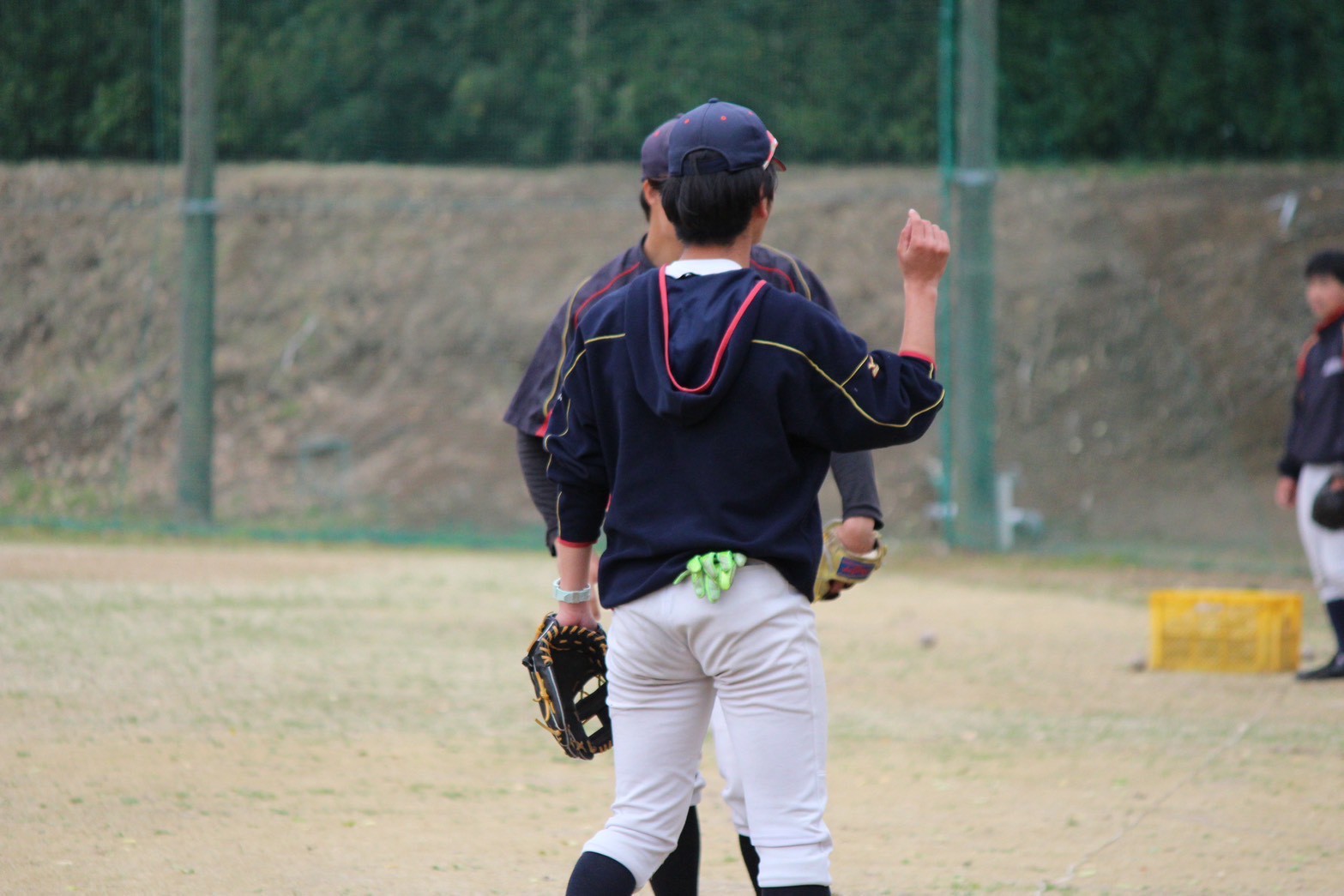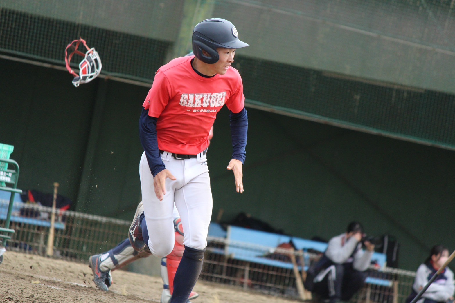 野球場に合流すると、選手たちは内外野の連携の練習を始めるところでした。私はカメラを持ち、外野からのバックホームやカットプレー、全力で駆けるランナーを激写しました!特に玄輝(渡邊/新4年/磐城)と大石(新2年/沼津東)のランナーの写真は躍動感があり、お気に入りです!走っている場面は盛れることが多いので、ランナーの写真を撮るのが私はとても好きです!